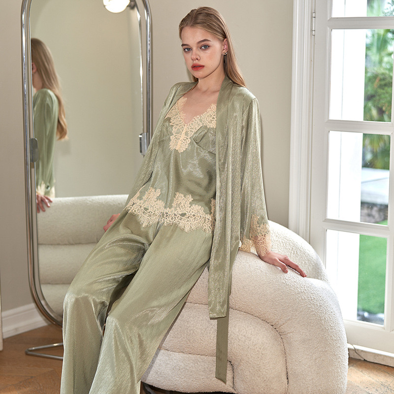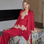 a 3 pieces nighty set. Includes a top, trouser and robe.