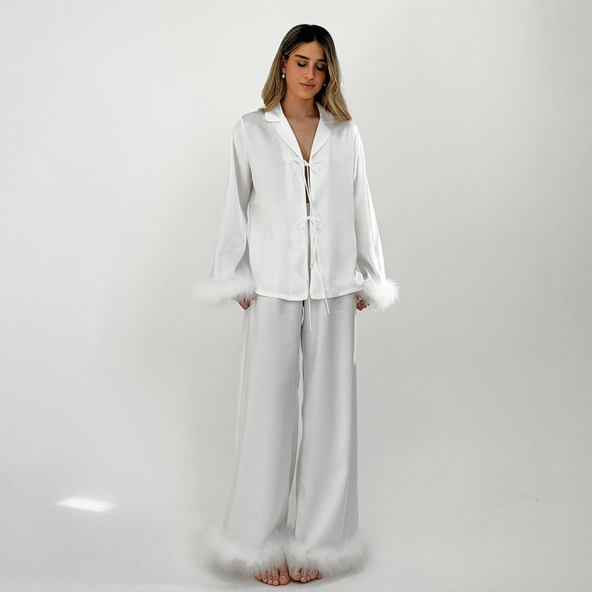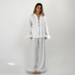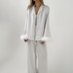 a lovely satin 2 pieces set. Includes a satin shirt and trouser.